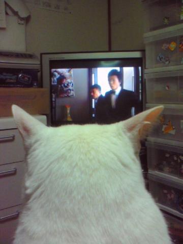 仮面ライダーキバ最終回を見ているにゃーちゃん。
